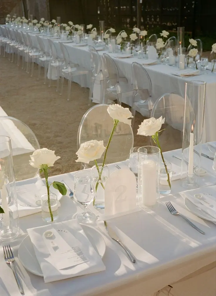نستخدم ديكورات ناعمة وعناصر راقية لخلق مظهر عصري وبسيط يعكس أسلوب حفلات الزفاف المينيماليست.