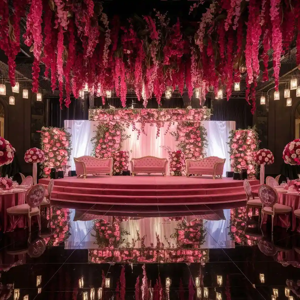 From indoor modern wedding venues in Dubai to chic stage decoration, every detail reflects sophistication.